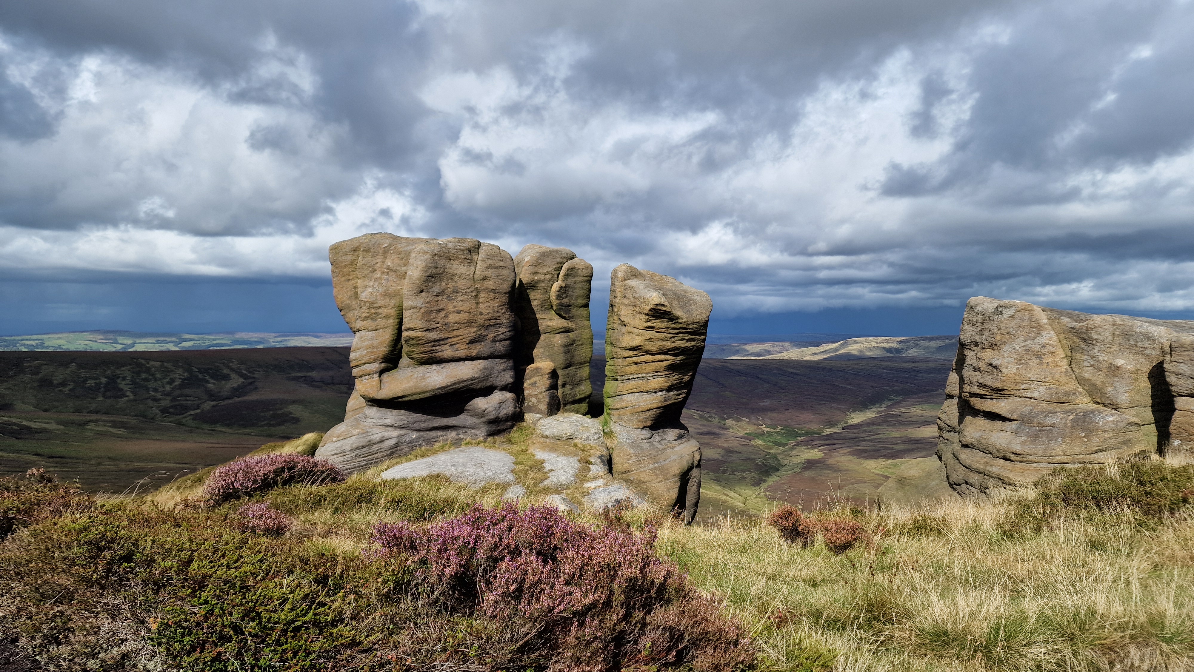 Kinder is a large and relatively flat plateau that dominates the northern part of the Peak District. This eastern aspect of the area is less popular and on many days the walker will be alone here. Views are of Win Hill, Lose Hill and Stanage Edge rather than over to the West and Manchester. A great place to get away from the crowds in this interesting part of Kinder. This route starts at Edale and climbs up to Kinder via Ringing Roger, and then walks around the eastern edges.