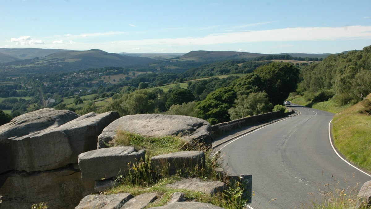 Walk through the gate at the back of the car park taking the path to Mother Cap, a distinctive rock feature with views over the Hope Valley. Continue uphill to the rocks on the skyline, Over Owler Tor. From here follow the path that leads to the gate in the fence that overlooks Millstone Edge. Taking care, go through the gate and carefully look over the edge to see the steepness of the crags of Millstone Edge; then retreat back to the gate. Follow the path, beside the fence, north east along the line of the edge. When the fence turns left, downhill just by a small valley, follow the path alongside the fence as it descends. Take the second gate on the left, through the fence, and follow the path until it reaches some old disused buildings. Just after the building take the path sharp left that starts to climb up through a wood. Follow this track uphill, through the wood, and then around the bottom of the crags. The path is below the edge and the edge is often hidden with trees. It is well worth wandering off left to one or two of the bays to see the full splender of Millstone Edge. The bay with the "keyhole" is particularly spectacular. Some of the most difficult Peak District rock climbing routes are at Millstone, and you can see why! Continue following the path towards the road. Just before the final descent to the road, take the path uphill slightly to reach one of two benches. These benches overlook Surprise View and have great views especially south down the Derwent Valley. Continue along the path and get to the road, cross safely to the pavement on the other side of the road. Walk downhill to reach the public footpath that goes south along via Lawrencefield. (2.5kms. 80m. 1hrs. 0min.)