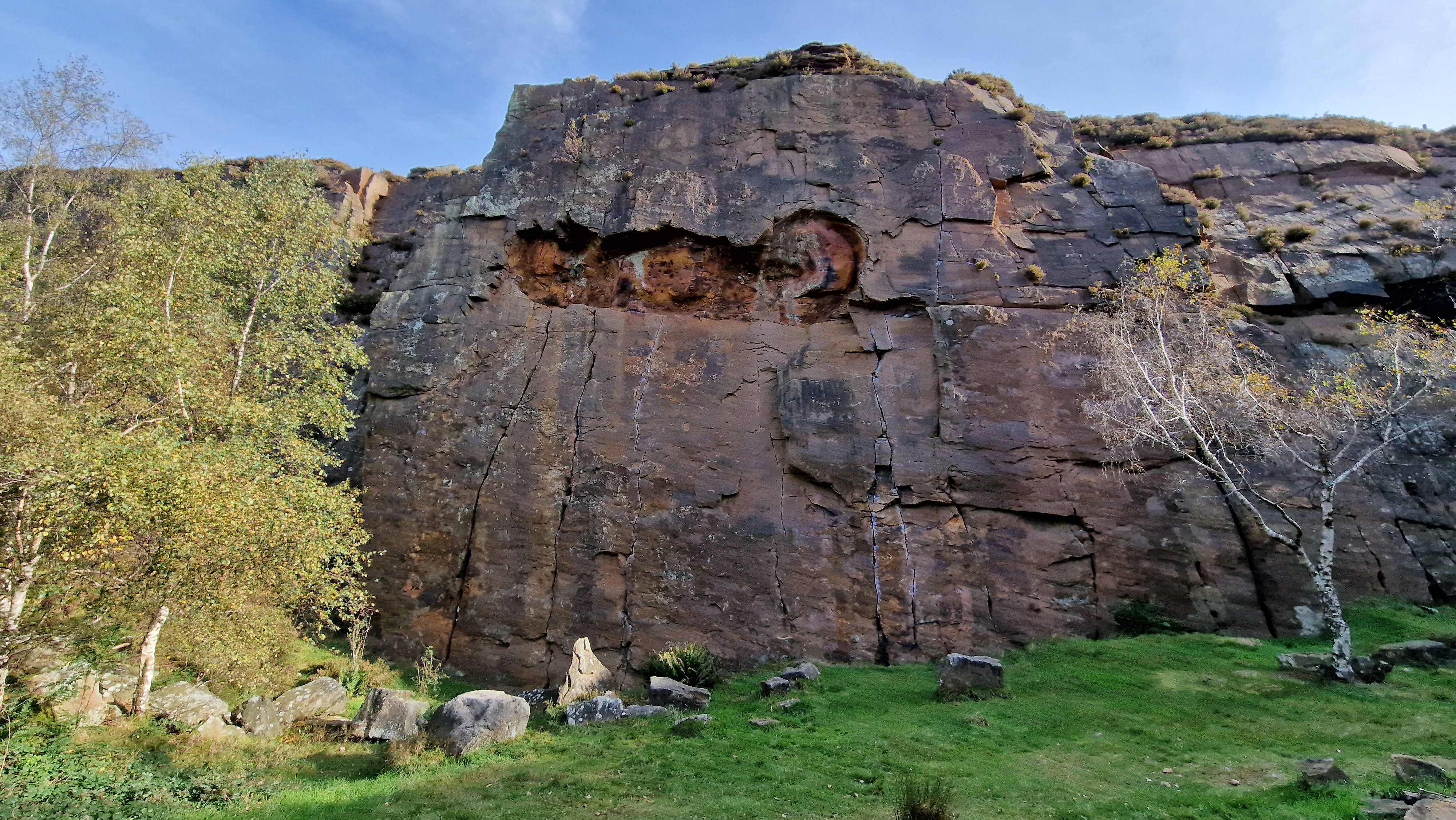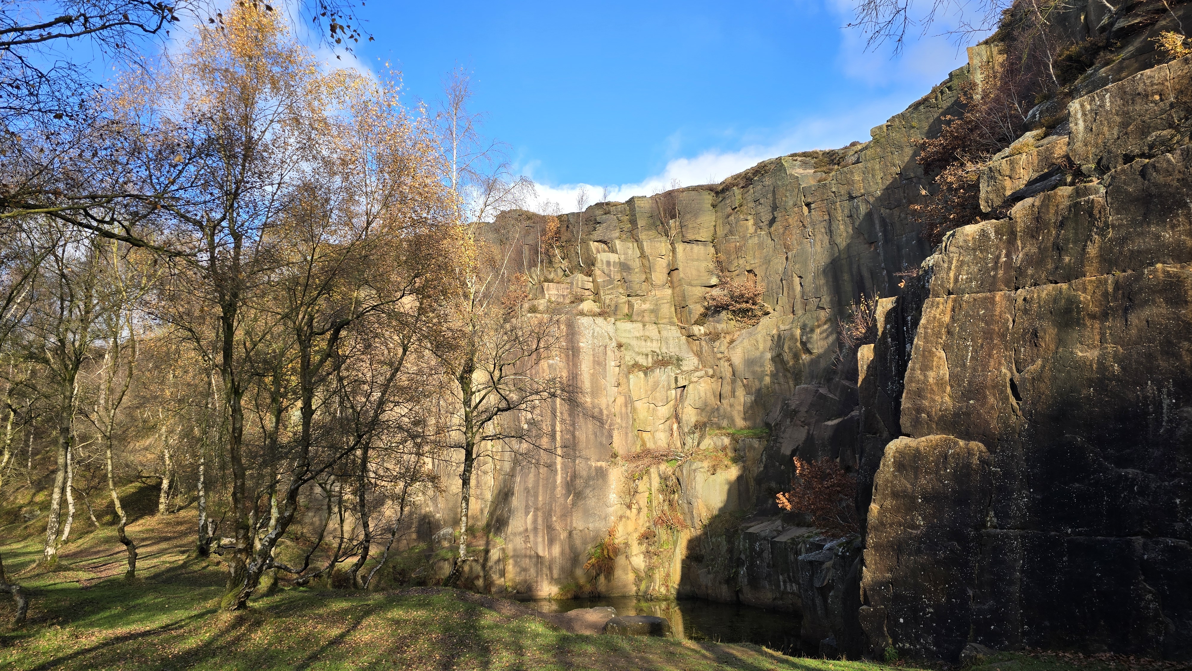 18th October 2023 A great walk for a fine autumn day. The size (height) of the crags at Millstione and Lawrencefiled never fails to impress. They are quarried rock, and not natural but nevertheless impressive. Great colours in Bole Hill wood. this is a popular area but on this midweek morning there were few people about.