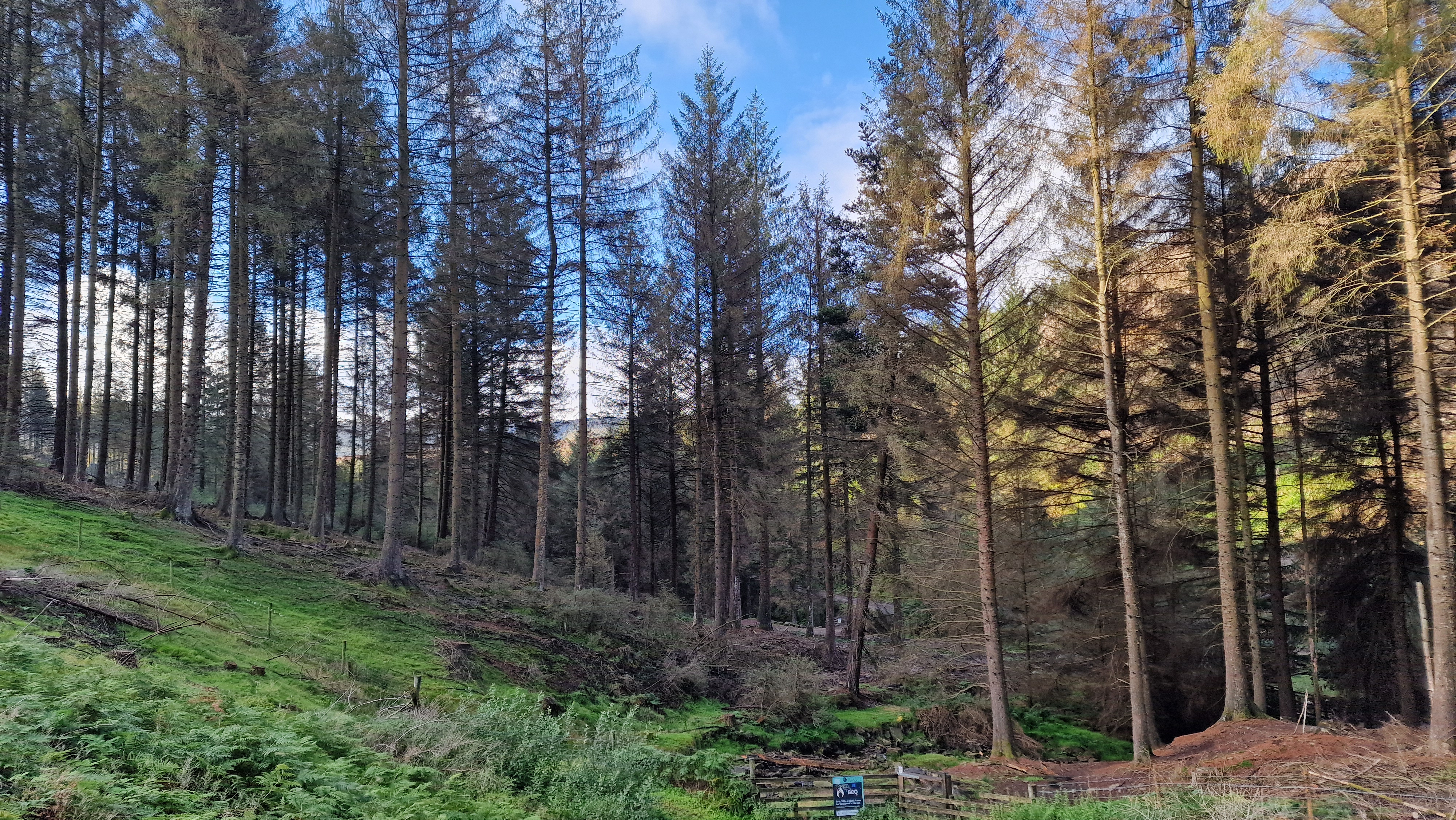 At the path junction, below Mill Hill, there is a signpost pointing back to Kinder, to Hayfield, to Bleaklow and the way we take, to the Snake Inn. This route turns right, east, to follow the Snake Path. This is a good path, although a bit wet in the initial phase. All the way there are great views along the northern edge of Kinder, the edge we have just walked. Look out for the ruined building and bridge prior to seeing Lady Clough Plantation. The path enters the forest about 1km from the road. Follow the path through the forest to get to the footbridge. Once over the footbridge turn left and follow the path north; this is the path followed at the start of the walk. The path leads to the A57, cross the road to Birchin Clough. (5.0kms. 50m. 1hrs. 40min.)