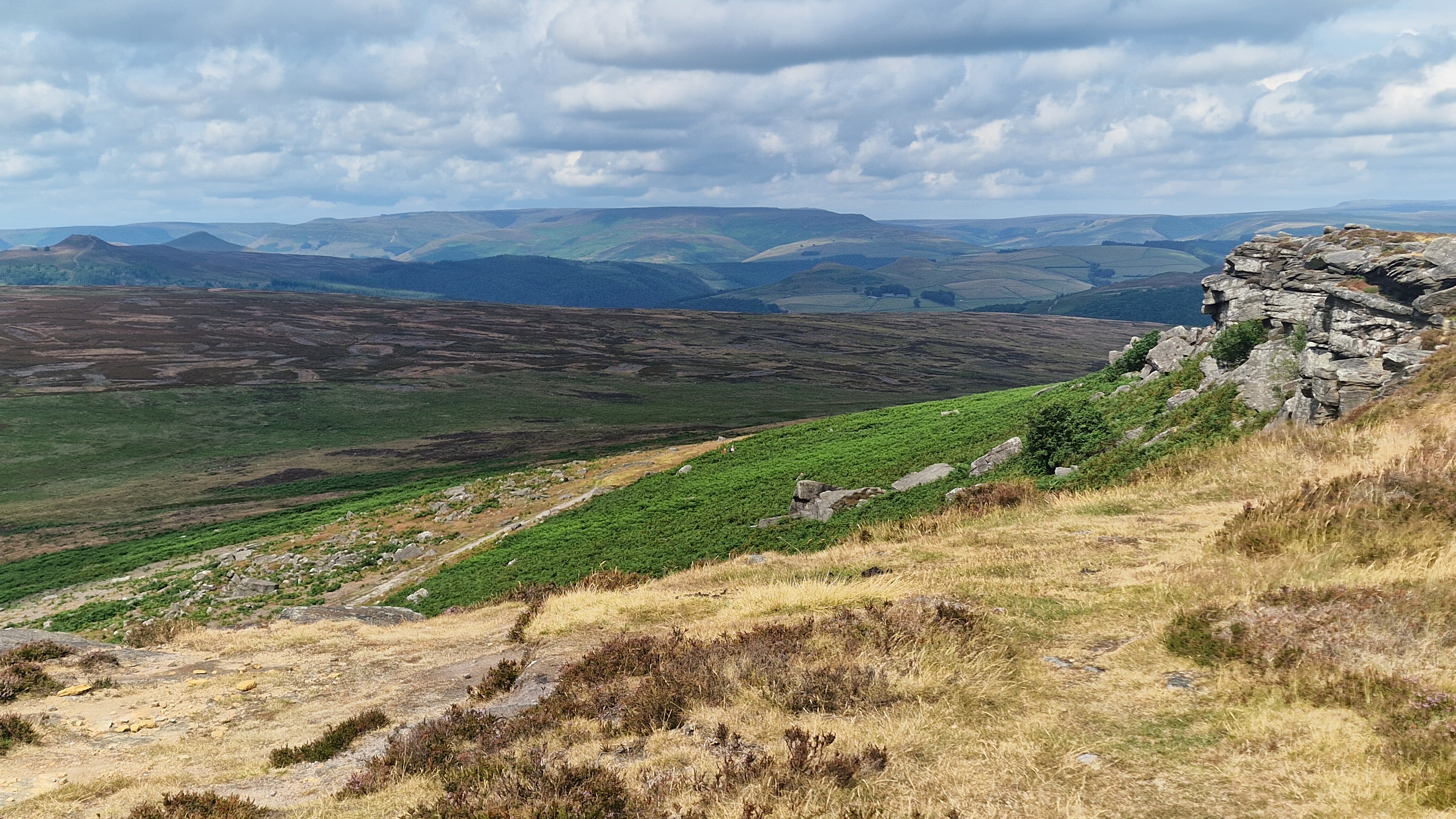 14th July 2024 An overcast start to the day which was a change as this was the middle of a heat wave. This time I followed the path south of the small reservioir (as described here). The track and path up to Stanage is a great walk. The views down Stanage Edge never fails too impress.