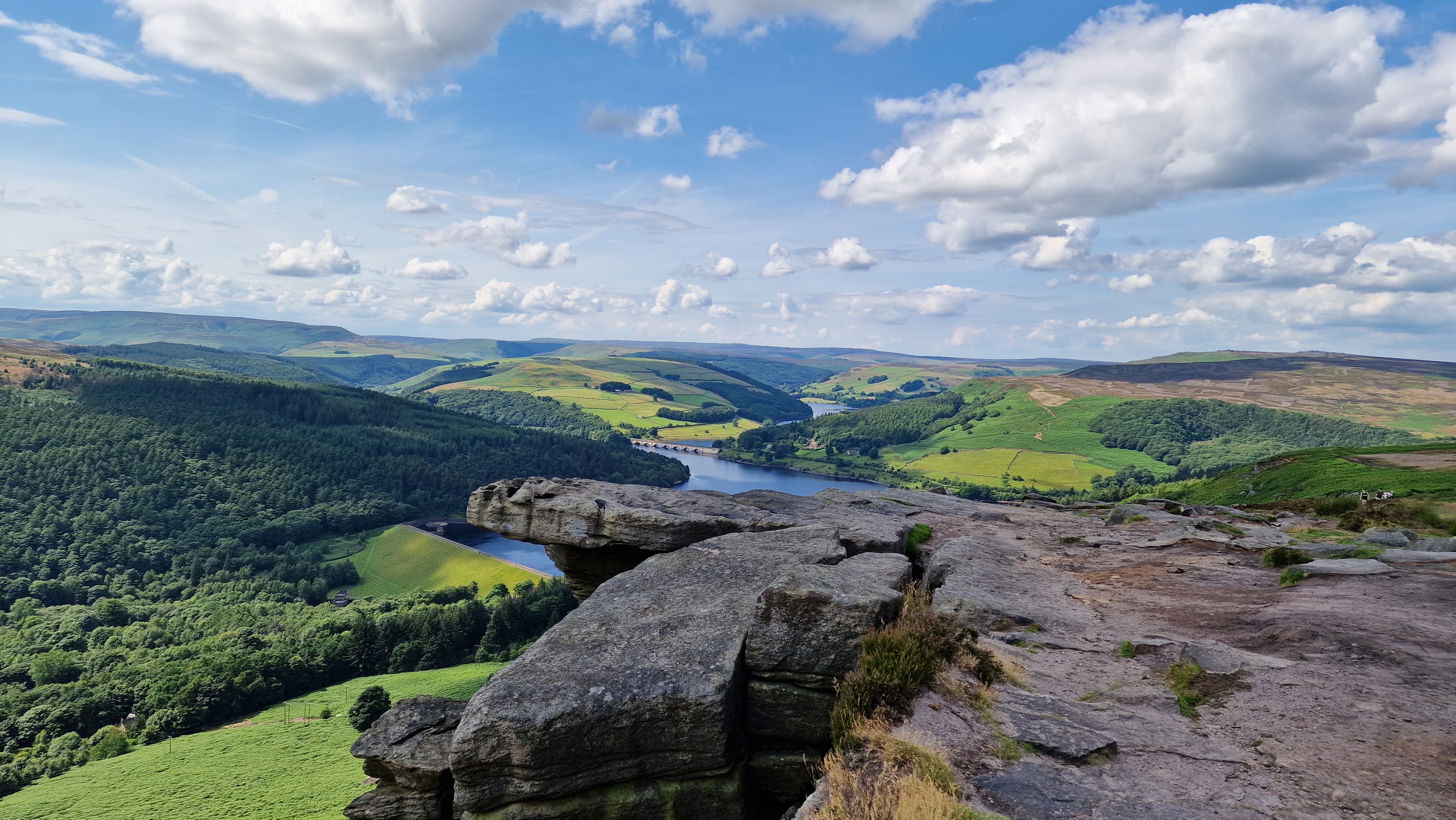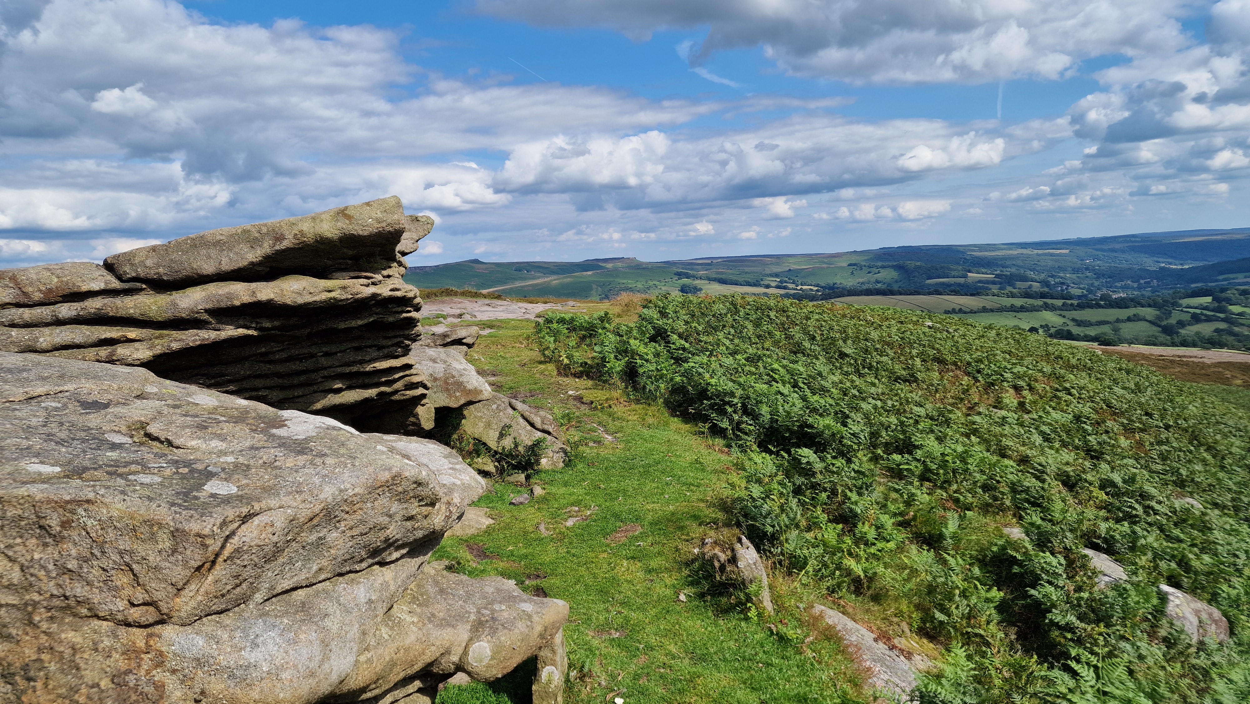 15th August 2019 This is a short walk but well worth it on a clear day. Set off in afternoon after a wet morning. Once up on the edge the clear views up the Derwent Valley are really good. This is edge gives a commanding view of much of the Peak District.