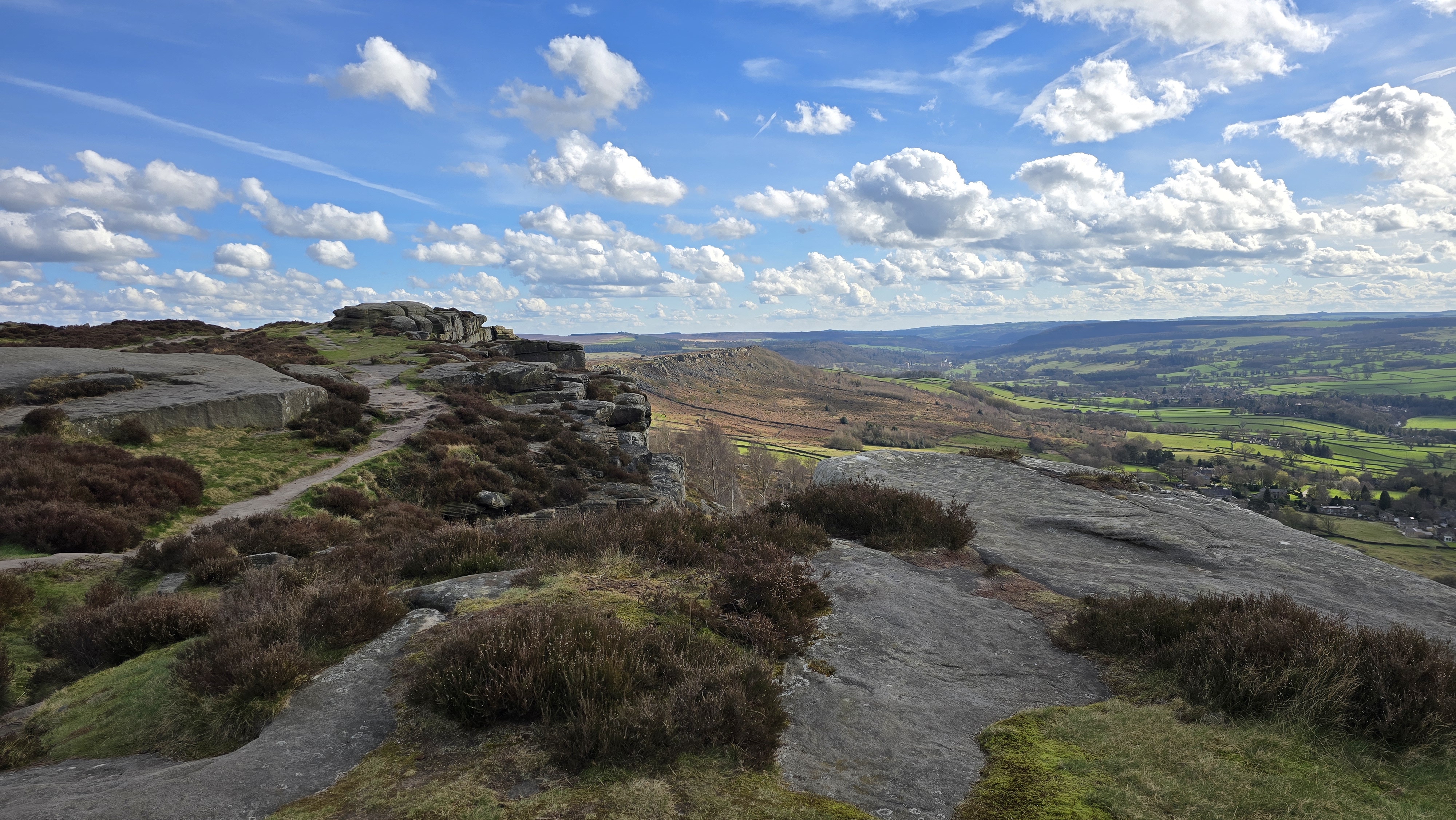 27th March 2025 A lovely spring day but with a bit of a wind. I did this walk in the opposite order; Curbar edge then Baslow. It was nice to sit on the seat by Wellington Monument for a cup of tea. This is only a short walk but well worth getting out. There are great views of the Peak District from these edges including the villages of the Derwent Valley, the edges themselves, and further beyond.