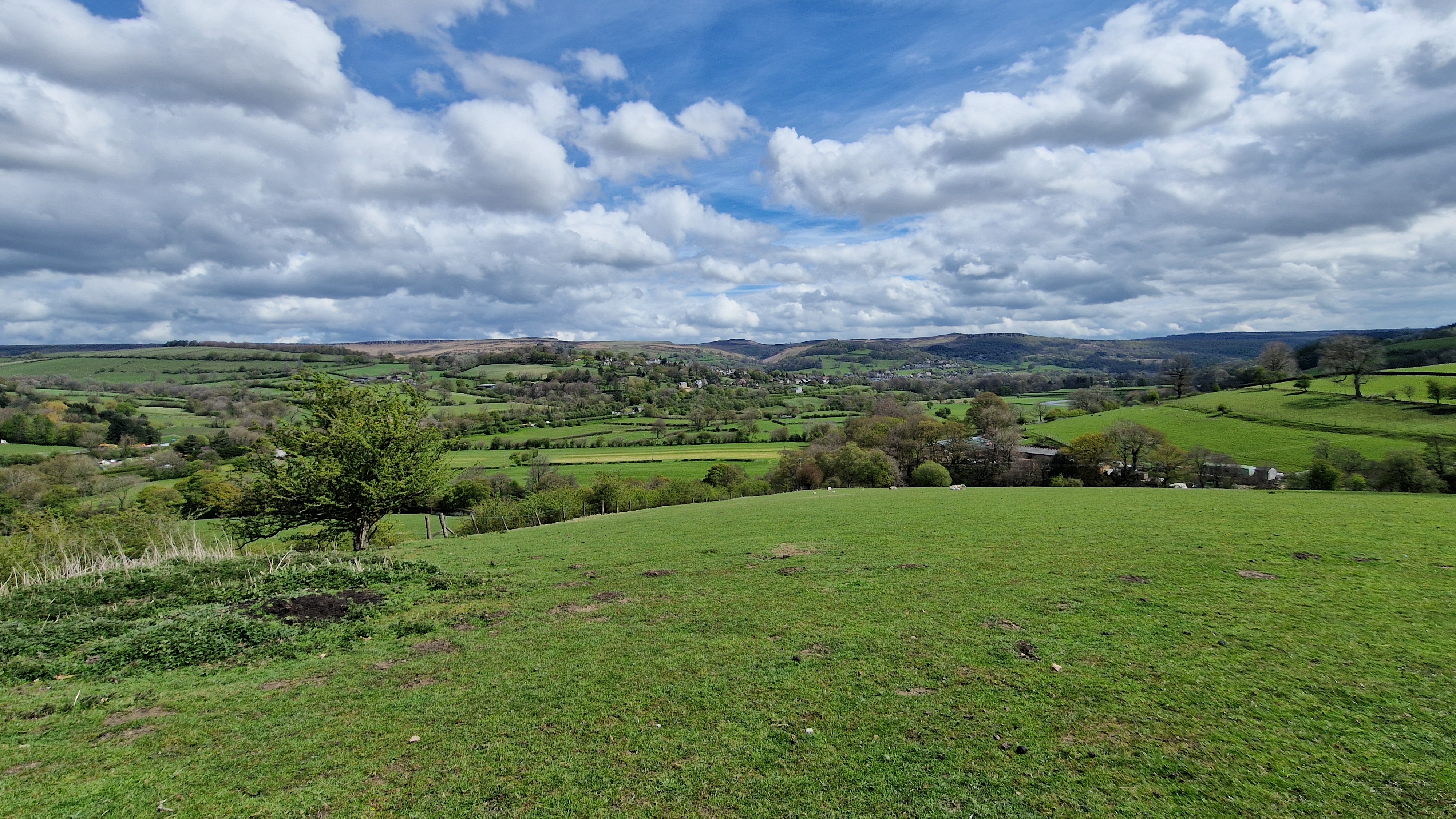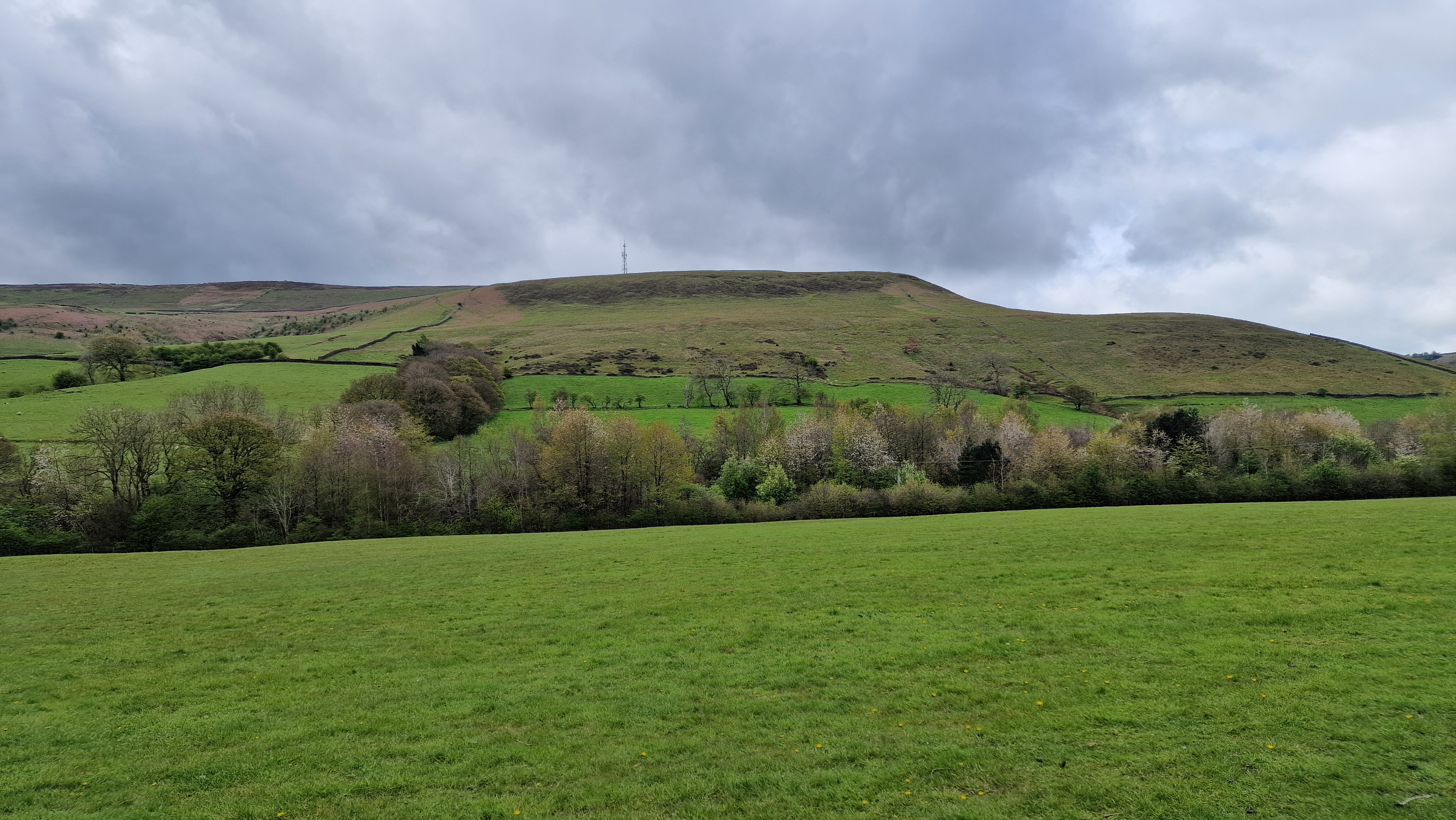 Shatton Moor looks over most of the Hope Valley from Hathersage and around to Bradwell, giving good views with a backdrop of the upper Derwent Valley. The route does not go to the top of the moor but keeps to the tracks around the moor. This makes it suitable for wetter days. Prominent on the side of Shatton Moor is a large communications mast. The route climbs on the tracks to the mast, then descends to Ofterton House and then the river side to return to Shatton.