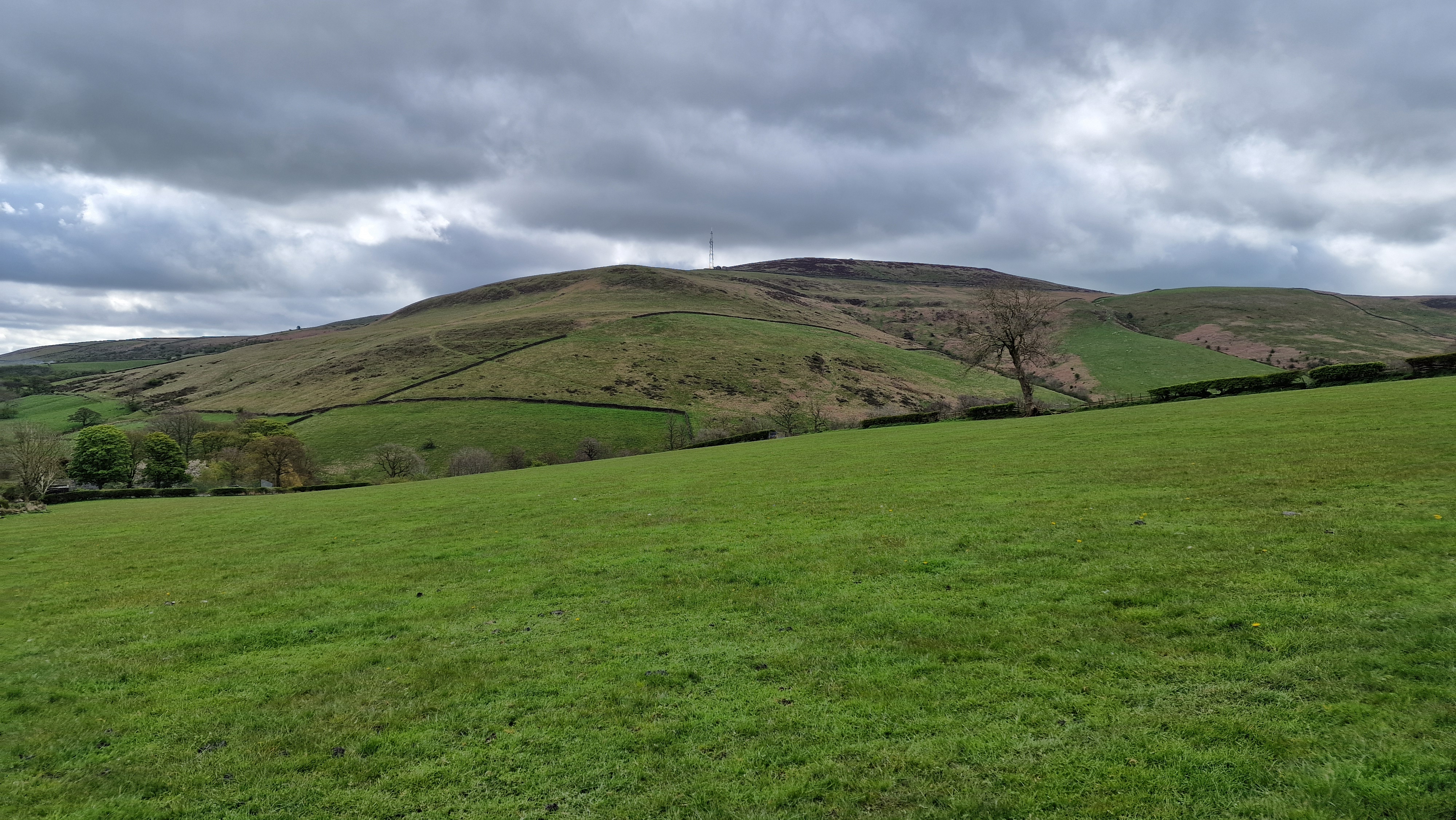 Walk to the end of Mytham Bridge road to cross the river by the footbridge and then follow the footpath alongside the main Hope Valley road to reach the minor road to Shatton village. Cross the road and walk through Shatton Village. Shatton is a particularly picturesque village. At the village centre, follow the road west towards Brough. Just before Brough, take the path on the left to walk towards then through Elmore Hill Farm, and continue on to reach the track. Follow this track uphill over Rebellion Knoll and onto Bradwell Edge. The communications mast is visible and this is where we are headed. Follow the track around the valley head to reach Shatton Edge and onto the communications mast. (6.0kms. 250m. 2hrs. 20min.)
