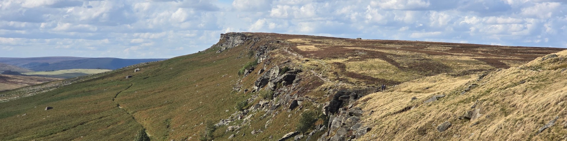 The Roaches are a gritstone edge on the west of the Peak District, just above Leek. The crags here broken up in places giving some spectacular shapes. This route walks along the edge and also takes in Luds Church, one of the spectacular sites of the Peak District and, Hen Cloud at the south of The Roaches which is a fine triangular hill with great views.