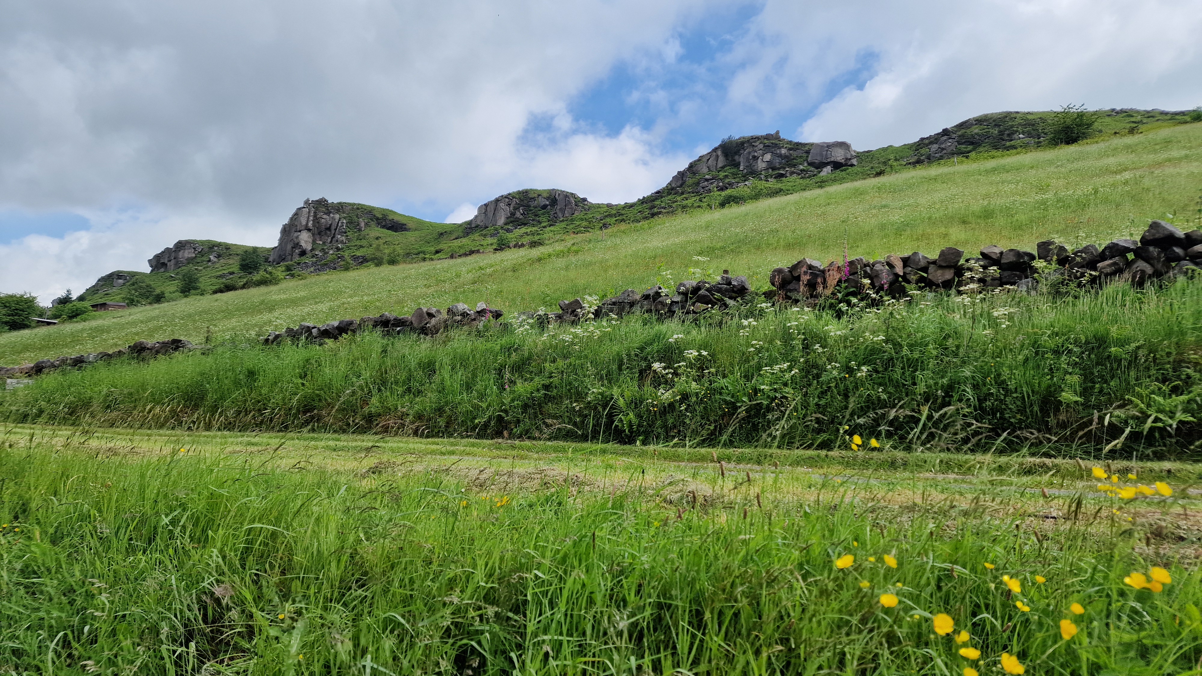 From the trig point walk along the path near to the edge of the crags. This path undulates but always with good views to Ramshaw Rocks in the east. Towards the south end the actual cliffs are high so remember to take care near to the edge. You may be lucky to see some climbers on these popular cliffs. At the end descend with care to the bottom of these crags, the path is steep and rocky. Continue onto the wall and the path to Hen Cloud.. Go through the wall by the gate and then the next wall, to reach the climb up Hen Cloud. This is a spectacular hill, triangular in shape. Climb to the top and take in the views over to the south west. Now turn around, descend Hen Cloud to the wall and turn left to reach the road at the car. (3.5kms. 80m. 1hrs. 10min.)