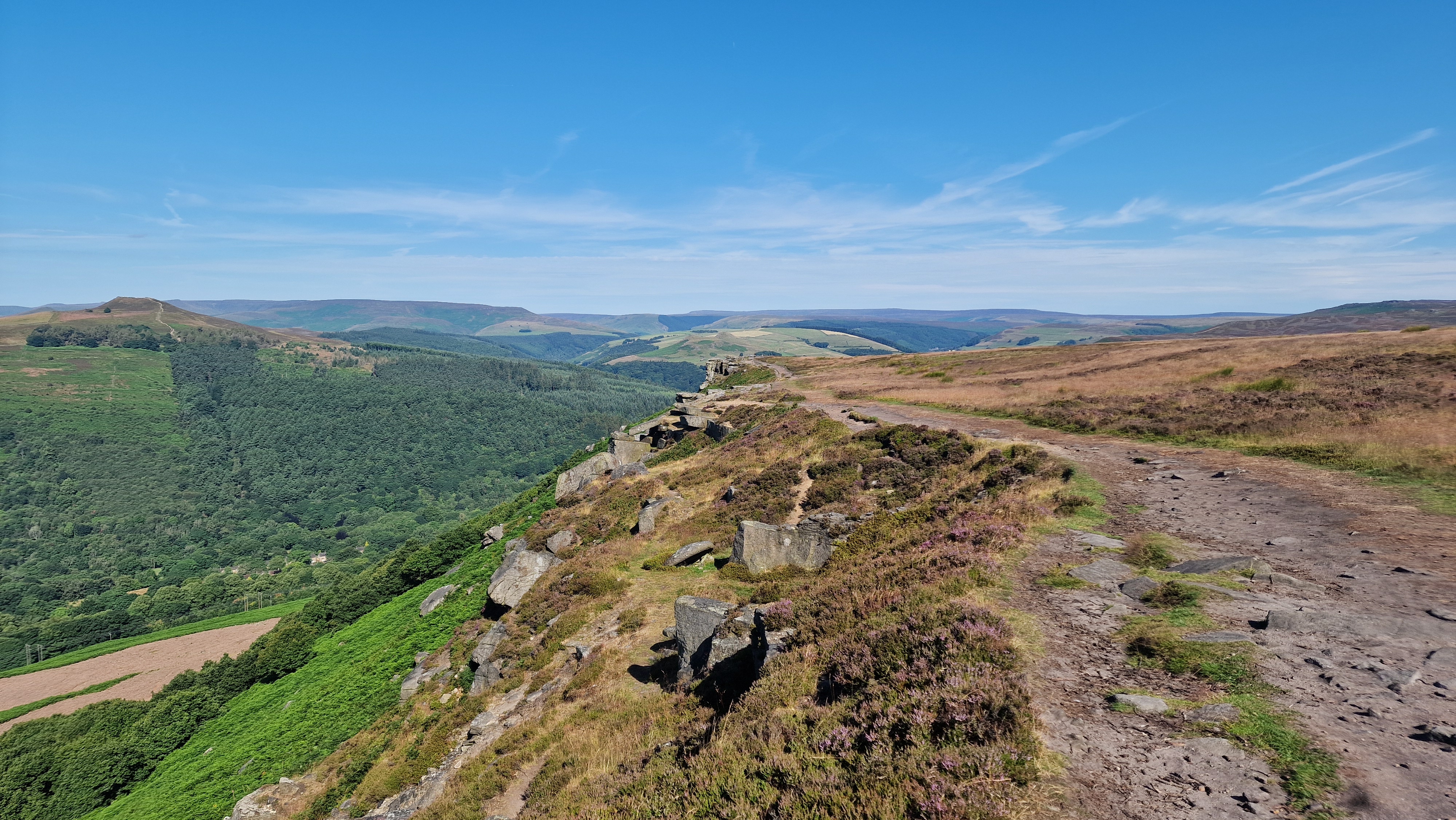 26th June 2025 Not a promising day but actually the sun came out at intervals. Once at the top of Bamford Edge the views were as spectacular as ever. It is not surprising how busy this. It looked that there were more "tracks" over the moor which are likely created by the estate in pursuit of managing the moor. Not complaining, as these do give better tracks fo us walkers.